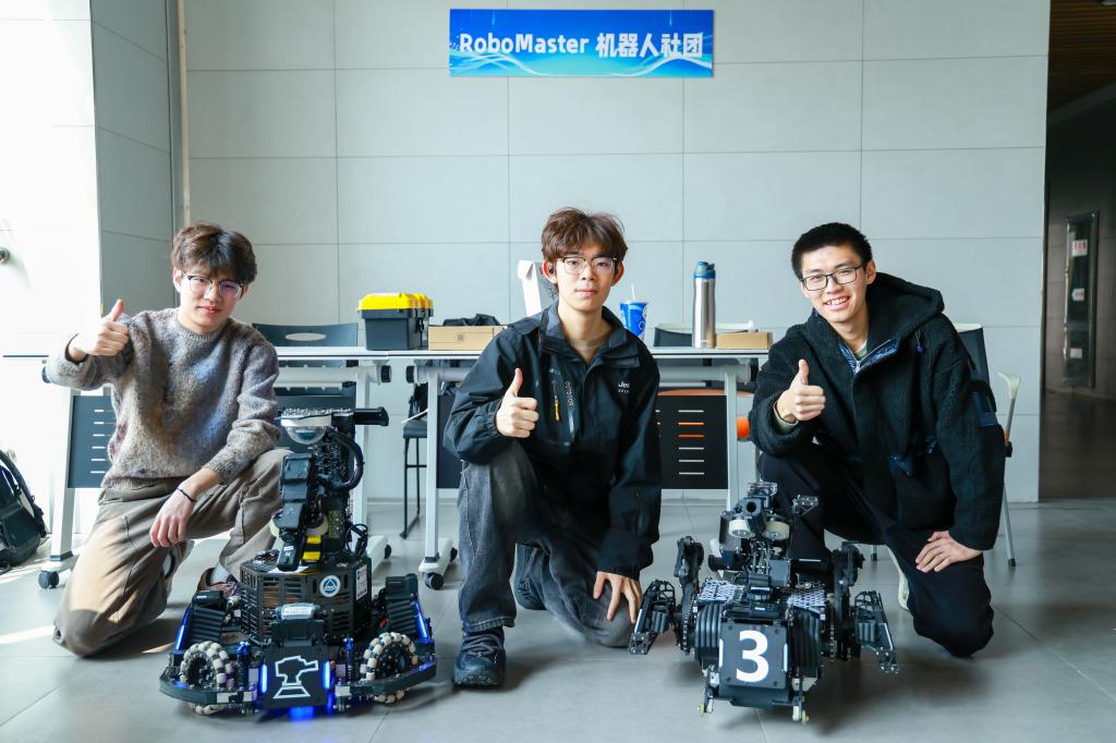 智能制造学院设置“移动战炮”“齿轮奥秘”“捕鱼达人”等硬核项目,让同学们亲手操作炮台模型、搭配齿轮模组、体验线轮省力原理,收获知识与奖品。数字科技与创意设计学院带来NFC音乐小黑胶体验站,参与者可拼贴装饰并绑定专属音乐;D-Club社团的3D造物盲盒则带领大家体验简易建模与现场打印,感受数字造物魅力。纤维工程与装备技术学院组织纸飞机定点投掷赛和孔明锁挑战赛,传统智慧与现代科技相映成趣。RoboMaster机器人社团的步兵机器人列队亮相,模拟驾驶体验区前排起长队,第一人称射击对战让同学们近距离领略机器人竞技的酷炫。不少家长带着中小学生也驻足体验,对科创活动赞不绝口。