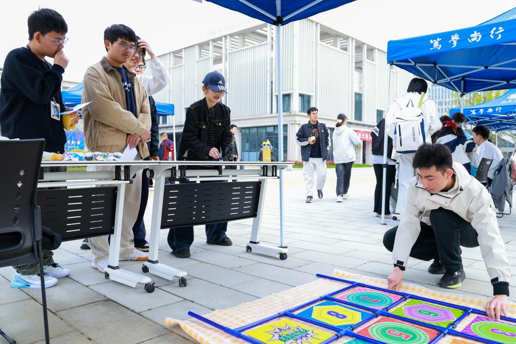 科技文化节现场人头攒动,一楼“大本营”早早排起长队。参与者领取集章卡后,穿梭于各学院及科技类社团精心布置的互动体验区,在玩中学、在学中乐。