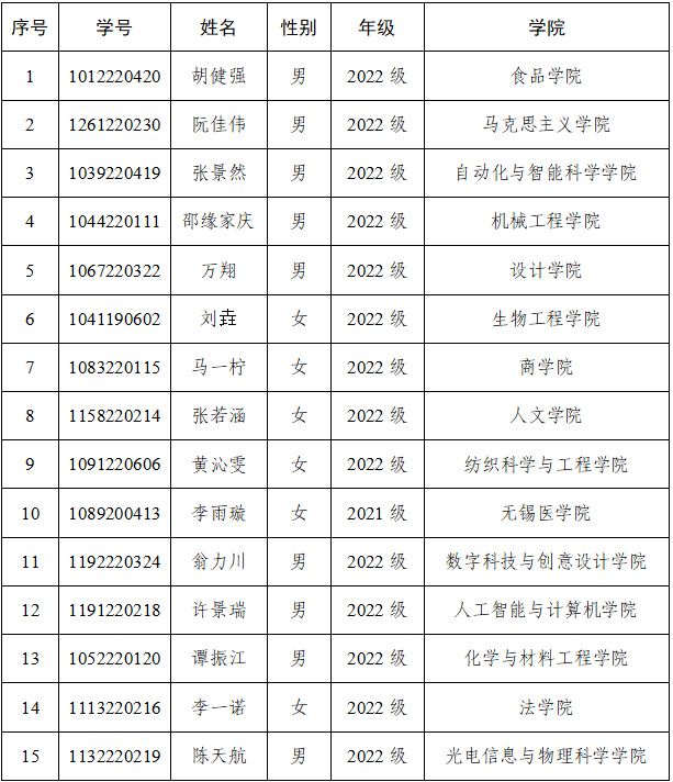江南大学第二十四届“十佳大学生”入围最终评选名单
