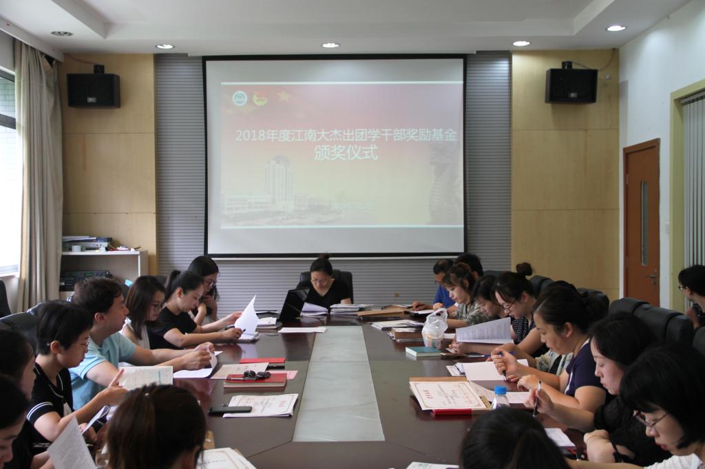 2018年7月2日,江南大学2018年度“杰出团学干部奖励基金”、“高顿奖学金”颁奖仪式在北区大学生活动中心F111会议室举行。校团委书记王维、校团委副书记单云婷及我校团学骨干代表出席活动。
